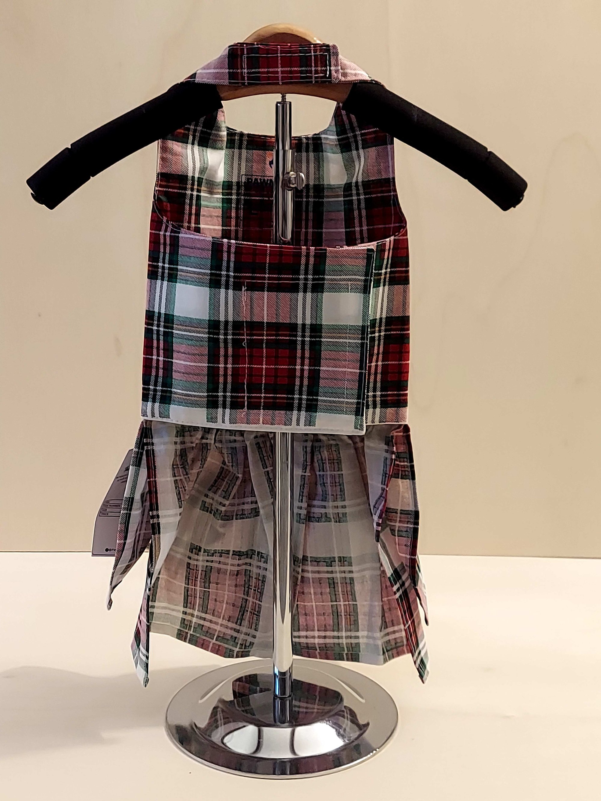 The apron dress combines charm and comfort for your dog. Styled like a classic apron, it features a bib-style front, a fitted bodice, and a flared skirt that drapes over your pet’s back.